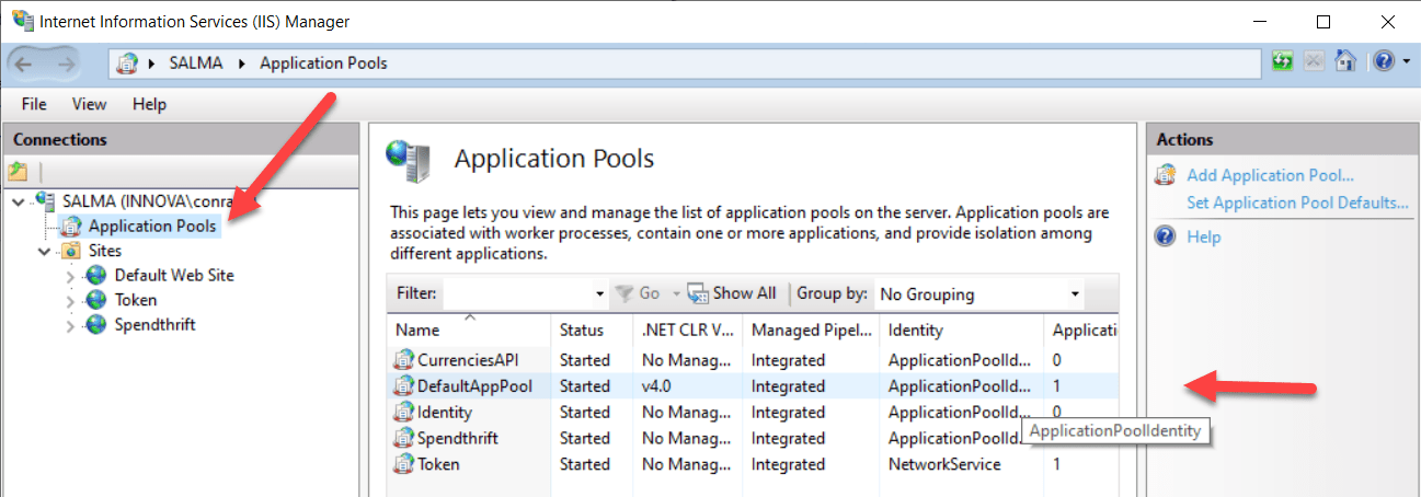 Click on the node and then double click the Application Pool with the name of the site you have created