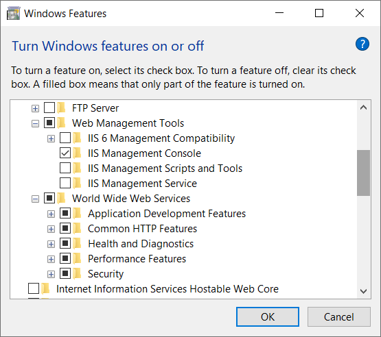 These are the default settings for a basic IIS web server configuration. The items will be pre-selected for you once you choose Web Management Tools and World Wide Web Services