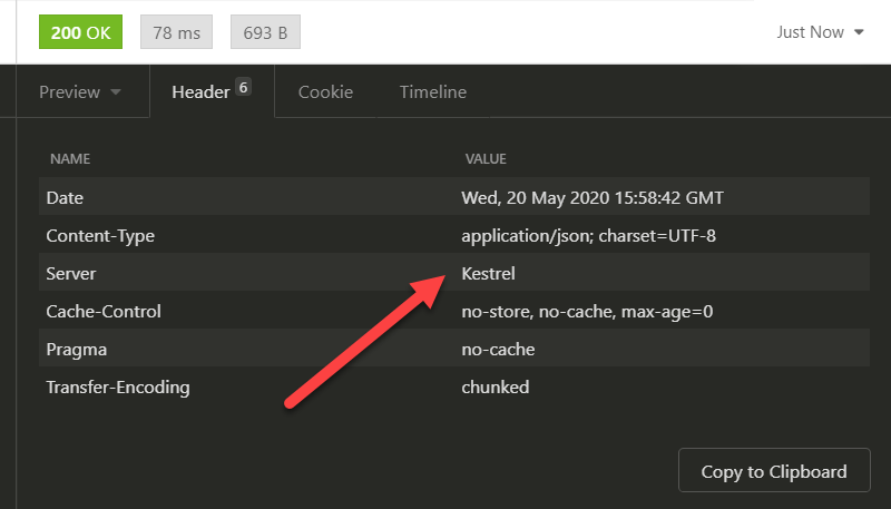 To test that it works, use Insomnia (or Postman) or curl or httpie – any tool that allows you to see the returned http headers from a HTTP request.