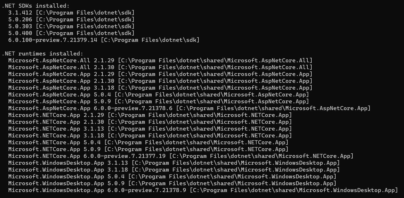 After installing the .NET 6 SDK you can confirm that it was successfully installed and recognized by running the following command:
