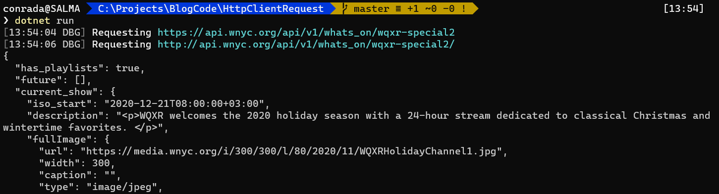 Console.Write(await client.MakeRequest("https://api.wnyc.org/api/v1/whats_on/wqxr-special2"));