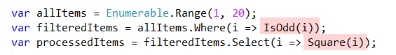 And as a benefit you can now test IsOdd and Square independently, now that they have been abstracted away from the code.