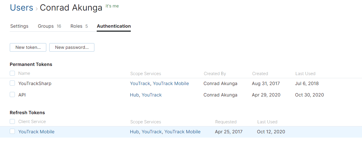You will see a list of all your active token, if any