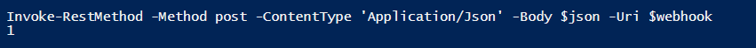 Invoke-RestMethod -Method post -ContentType 'Application/Json' -Body $json -Uri $webhook