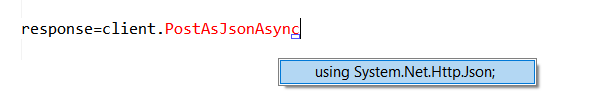 Which is why you can use the extensions in the System.Net.Http.Json namespace to simplify this. The extension method we can employ here is PostAsJsonAsync.