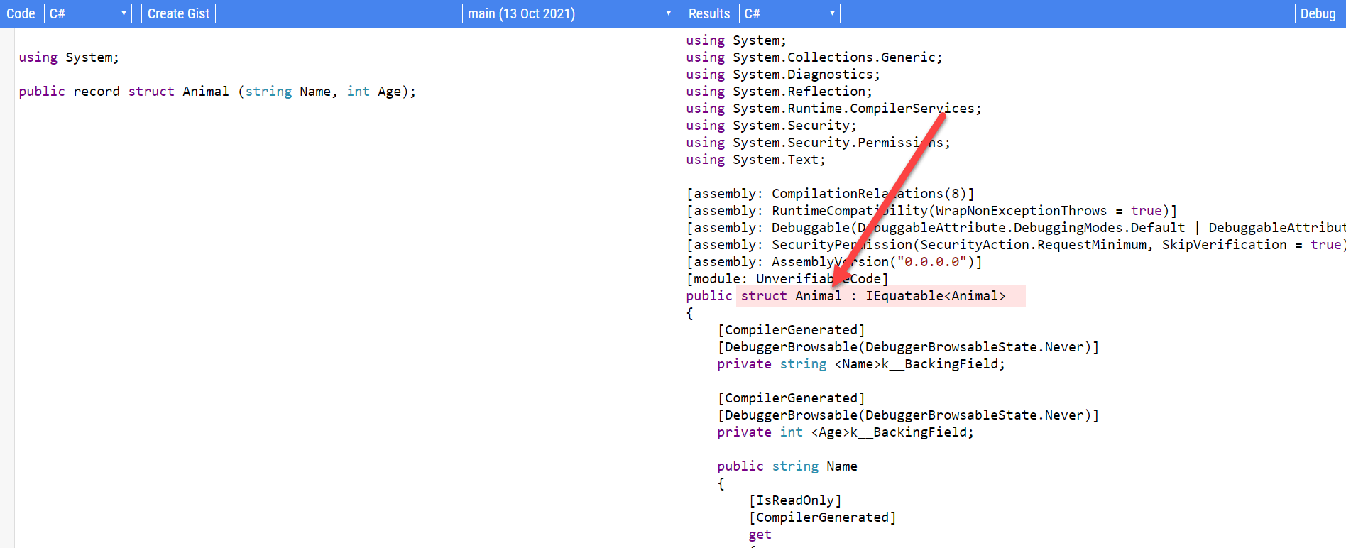 If we consult SharpLab.io to look at the generate code, we see the following: