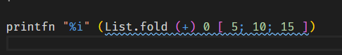 The squiggly line is the F# linter helpfully pointing out that there is no need to fold over addition – the same result can be gotten with List.sum