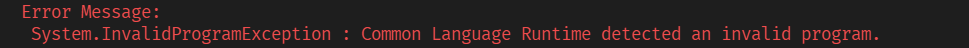 System.InvalidProgramException : Common Language Runtime detected an invalid program.