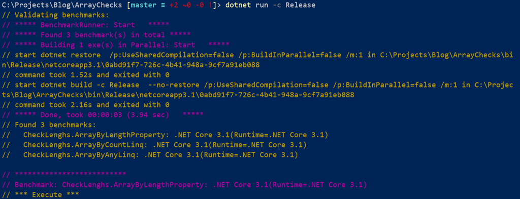 As you can see it has found the 3 benchmarks and is proceeding to execute them.