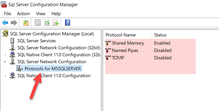 By default, SQL Server accepts connections using the Shared Memory protocol.