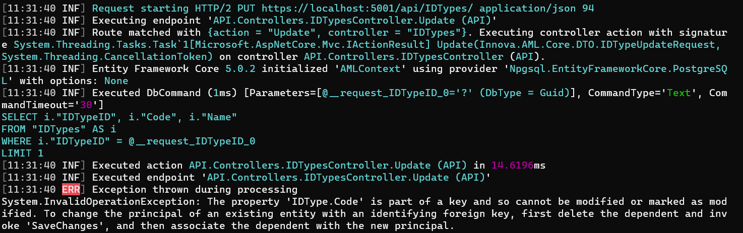 We get the above error, which is in my code has been repackaged and formatted for the API consumers.