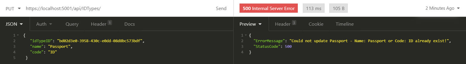 You can see on the right pane that the IDType is created successfully and we receive a 201 with a redirect to the new object.