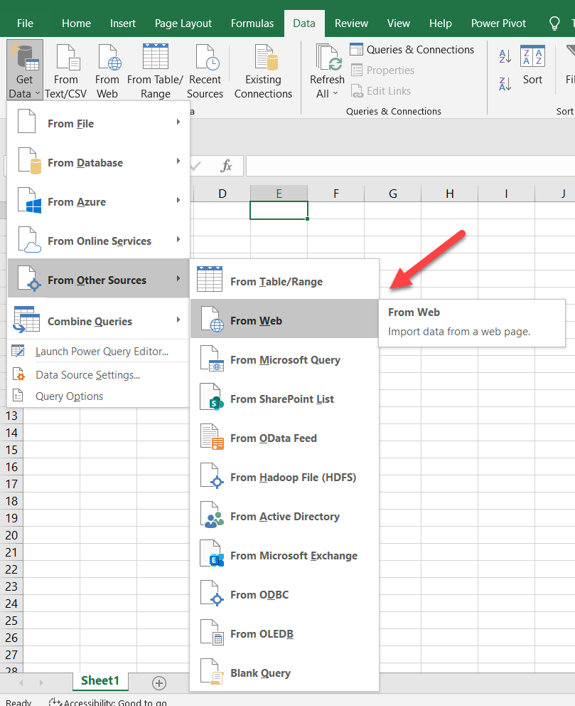 You should get a prompt like this that lists all the things Excel thinks are potential data sources in the URL.