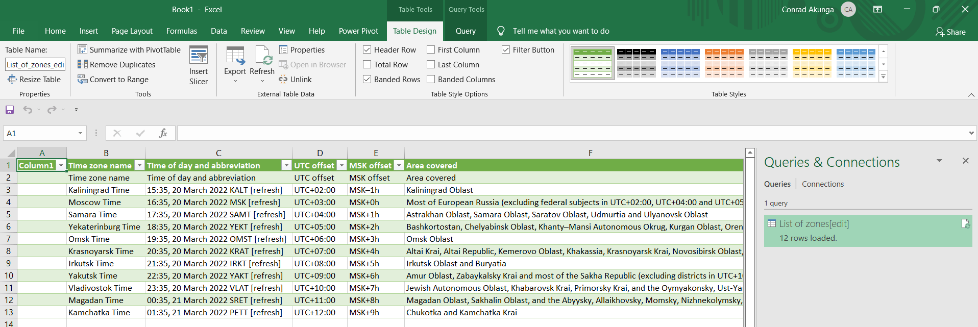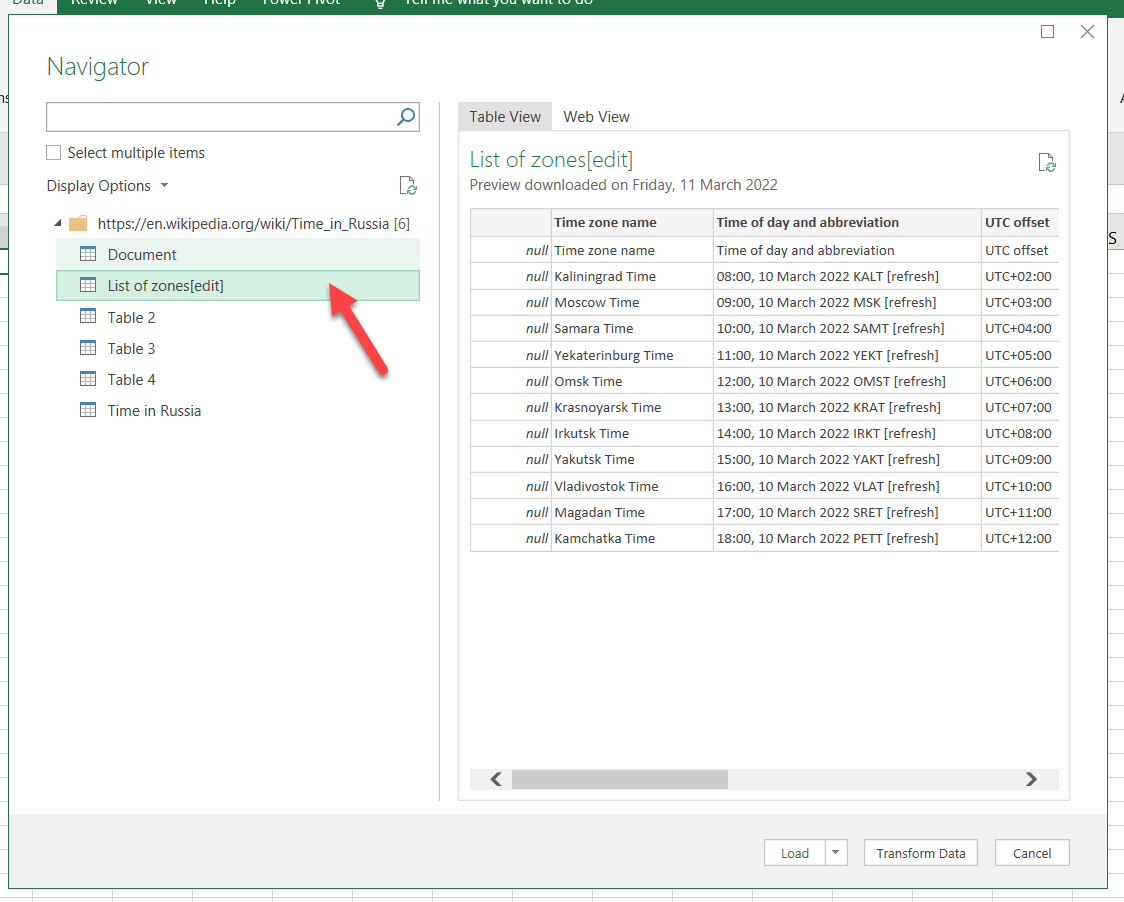 I recently needed to get into Excel a table of data - and this case was time zones in Russia.