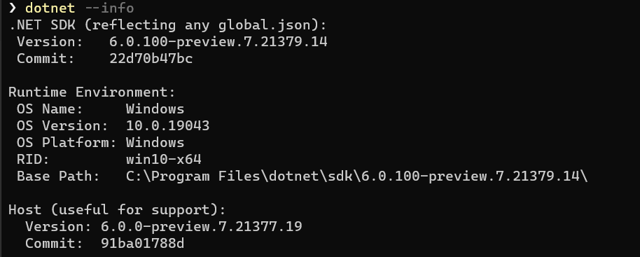 After installing the .NET 6 SDK you can confirm that it was successfully installed and recognized by running the following command: