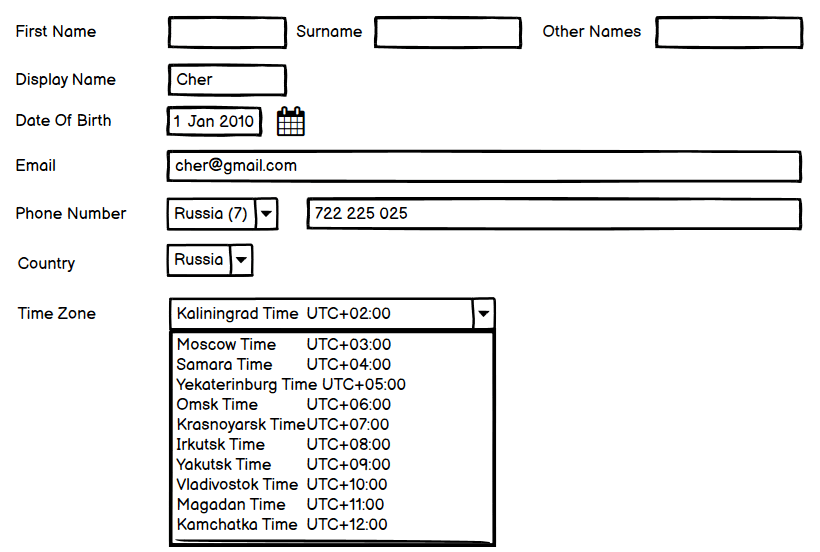 “Russia has 11 different time zones. So to prevent your contacts getting their notifications too early (or too late) you need a way to specify which time zone your contact is so that the server can compute the correct time to send the messages.”