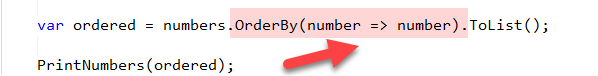If I want to order this collection of numbers into a second List<int> I do it like this:
