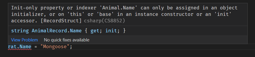 var rabbit = new ReadOnlyAnimalRecordStruct("Rabbit", 4);