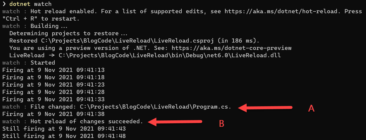 - B - the Hot Reload updates the changes and applies them to the running application.