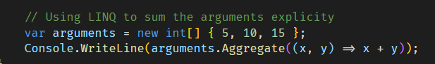 The equivalent code in C# is as follows, using the LINQ aggregate extension method.