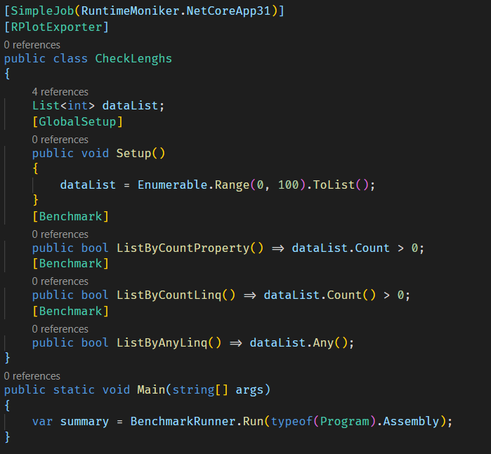 We can use a Stopwatch to time the performance of each of these methods, but a much better (and more scientific) way of doing it is with the tooling provided by Benchmarkdotnet