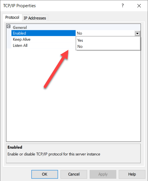 You will see that TCP/IP is disabled. Double click to open the configuration.
