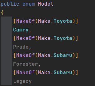 .GetMember(_model.ToString()) //Get the member info for the passed field (Camry)