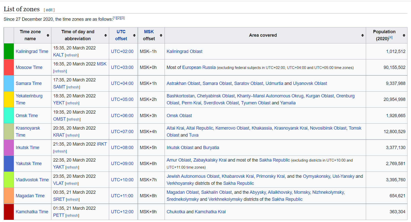 I recently needed to get into Excel a table of data - and this case was time zones in Russia.