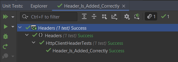 We can verify this with a unit test, using the Should() method from the FluentAssertions library.
