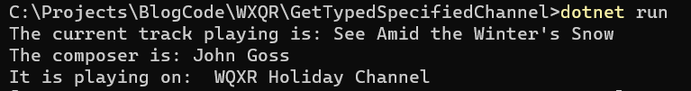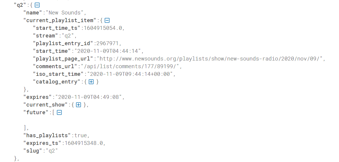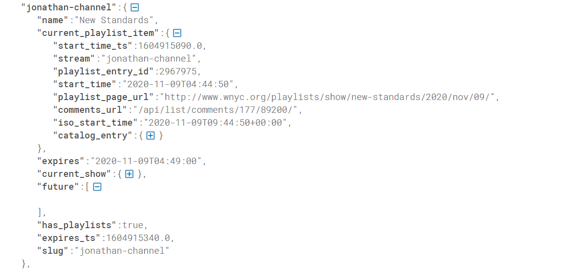 So, to get the currently playing track on the Holiday Channel, we make a request to the following URL