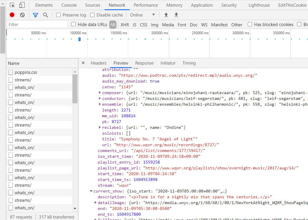 There seem to be quite a number of requests to this end point, and the results appear to be JSON.