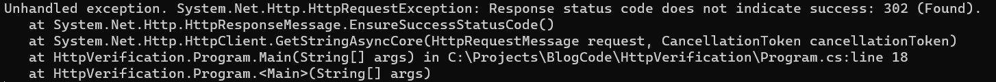 Now I opened by saying it is partly true and partly false that the HttpClient automatically follows redirects, and I seem to have proved otherwise.