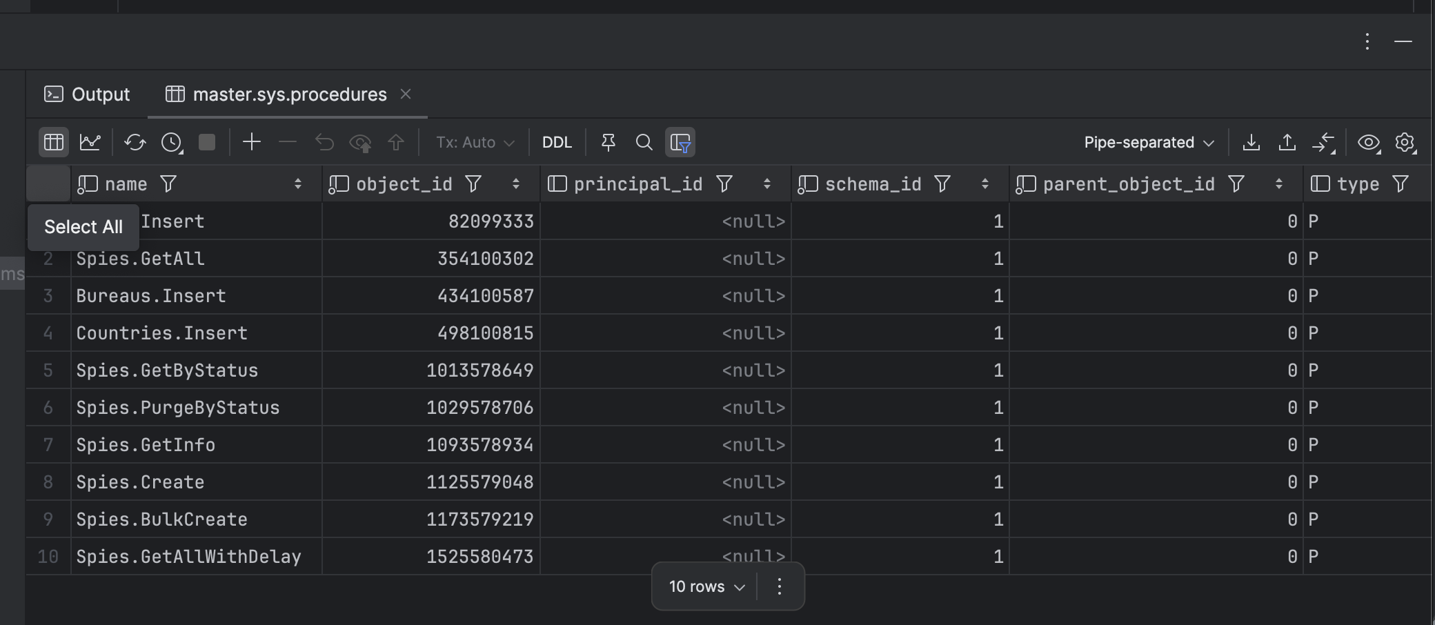 Suppose you wanted to get a list of stored procedures in your SQL Server database.