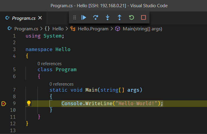 And there you have it. You can now remotely create, develop and debug applications from your primary machine.