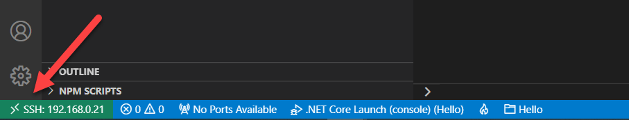 You can always tell where you are connected on the status bar of VS Code.