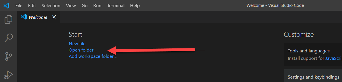 Finally if all goes well you should get the main screen of VS Code.