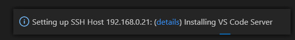 Go ahead and click Connect. You should see this prompt as VS Code remotely sets up the infrastructure it needs to work its magic.