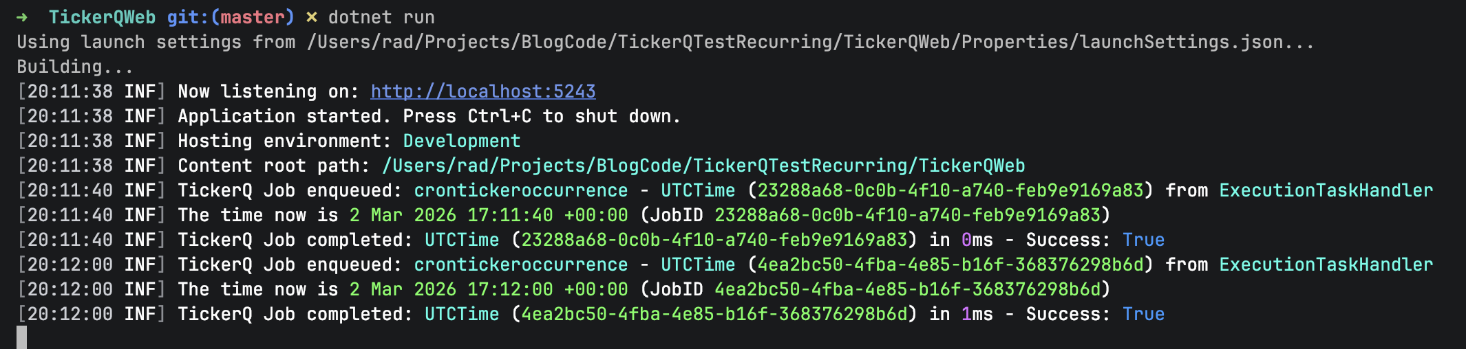 In this post, we have looked at how to use the TickerQ library for recurrent and timed schedules, as well as how to use it in a traditional .NET application with an application host (Web, API, or WorkerService)**
