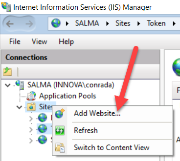 Once this is done, on the IIS Console right click on Sites and then click Add Website