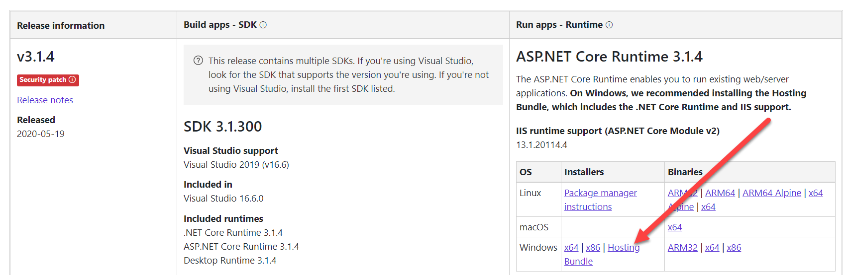 First, go to the .NET Core downloads for the latest version of .NET Core.