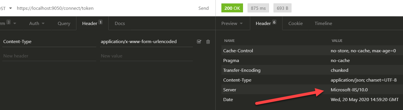 The exact version of IIS will vary based on your operating system (Windows 10 or Windows Server). But whichever the case it will show Microsoft IIS somewhere in the server header.