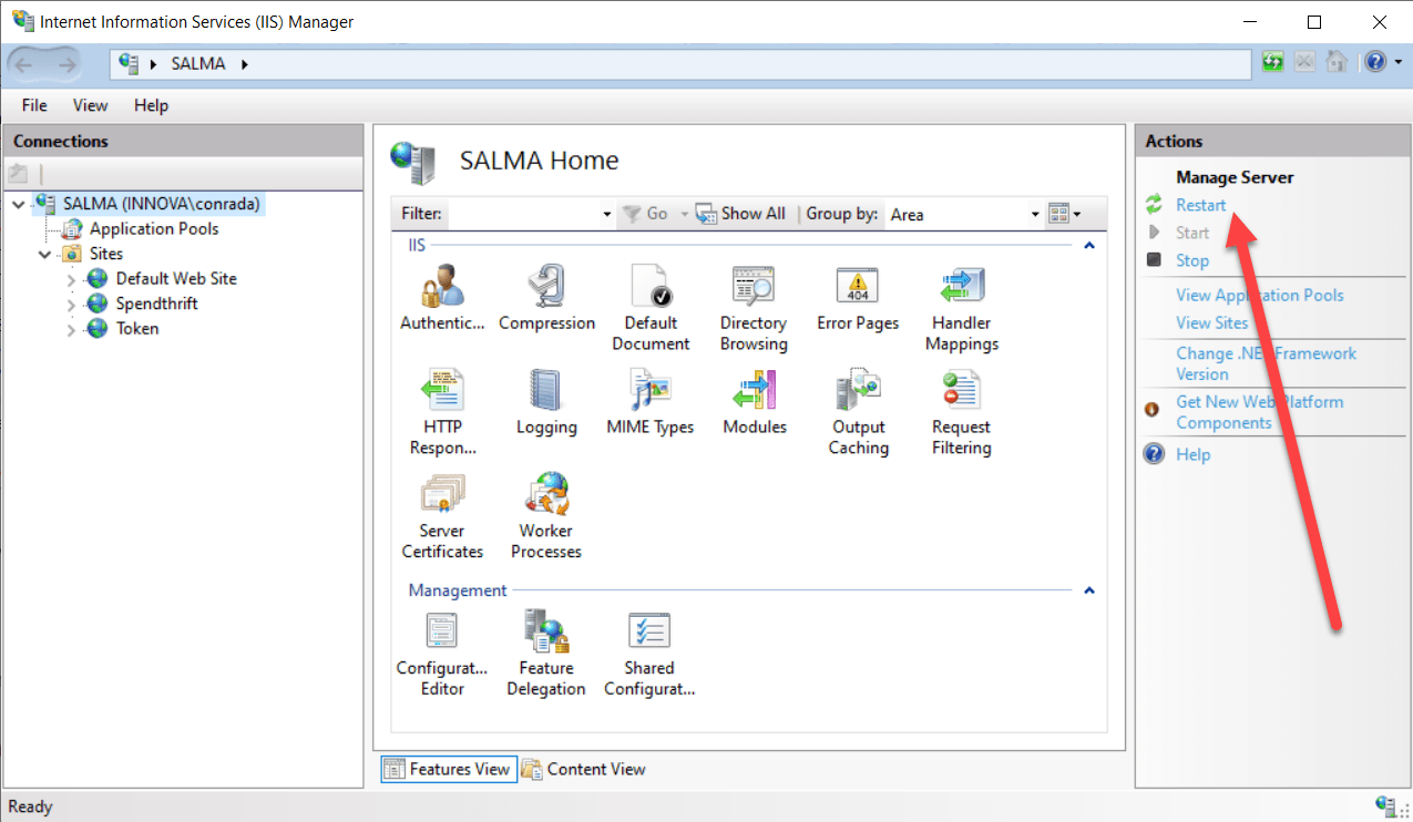 Finally, navigate to the new site you have created and on the right bar, restart it.