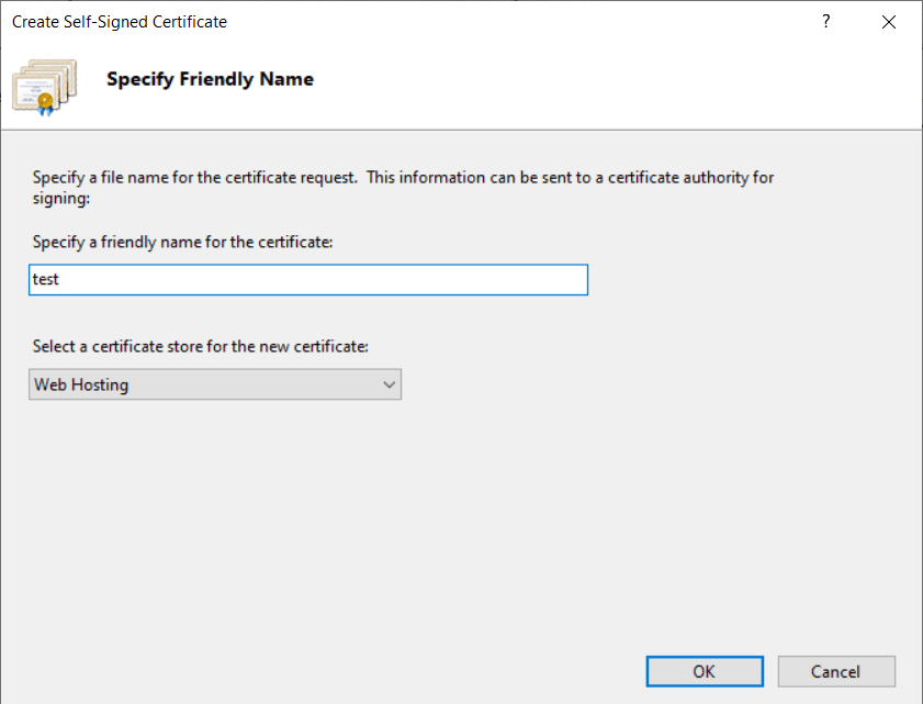 Once this is done go back and create the https binding as outlined above. The name from this step is what you will use to select the certificate.