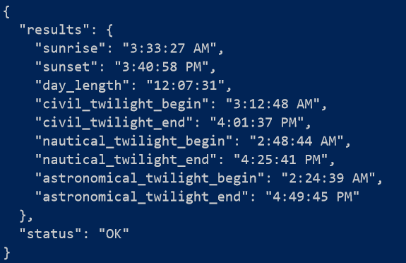 For example I have some code here that downloads the sunrise and sunset times in Nairobi and prints them to console